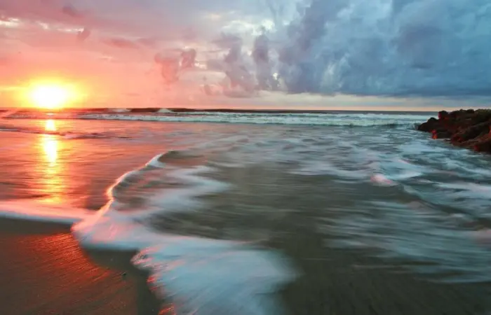 Watch the sunset when the beach glows in fiery orange.