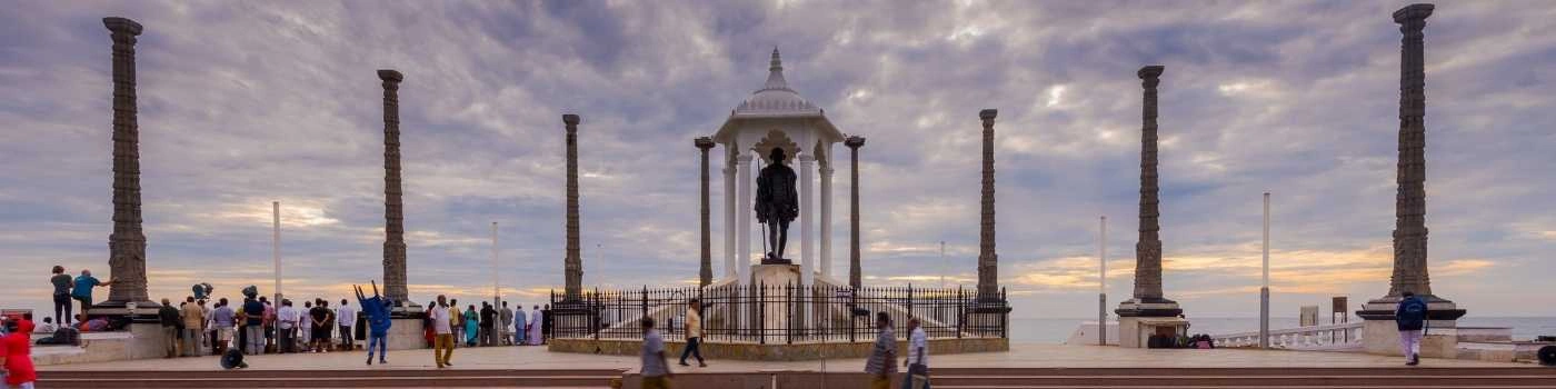 Ancient Kanchipuram temples, UNESCO monuments of Mahabalipuram, scenic coastal drives, French colonial streets, spiritual retreats, and relaxed beachside evenings.