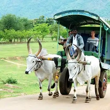 Bullock Cart Ride A Bullock cart ride through the countryside is for sure a must experience activity at Periyar. While you move along slowly in a bullock cart, you will witness the vineyards, sunflower fields, mangoes, jasmine etc. You can see for yourself how the village people spend their daily life for bread and butter and how everything moves during a typical day at Periyar. There are 2 options for this ride, one starts by 6am in the morning, and the other is 2.30pm noon.