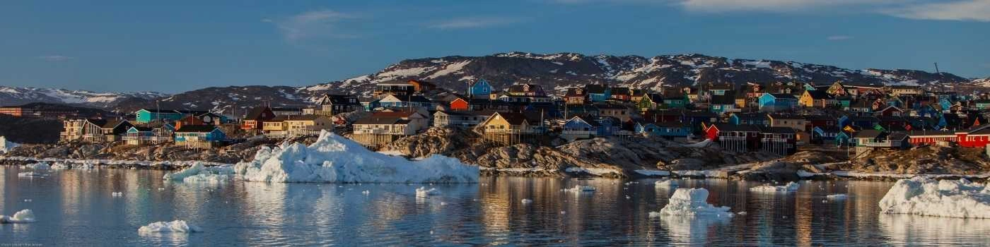 Ilulissat is Greenland´s most famous tourist destination on the west coast of the country. It is often referred to as "The City of Icebergs." The vibrant town has 5,000 residents and is located 350 km (about 220 miles) north of the Arctic Circle. Ilulissat is located next to the World Heritage designated Icefjord of Ilulissat (Kangia) and is fed by the Sermeq Kujalleq, one of the fastest and most active glaciers in the world, by calving 40 million tons of ice per day into the fjord. In Greenlandic, the name "Ilulissat" means "icebergs."