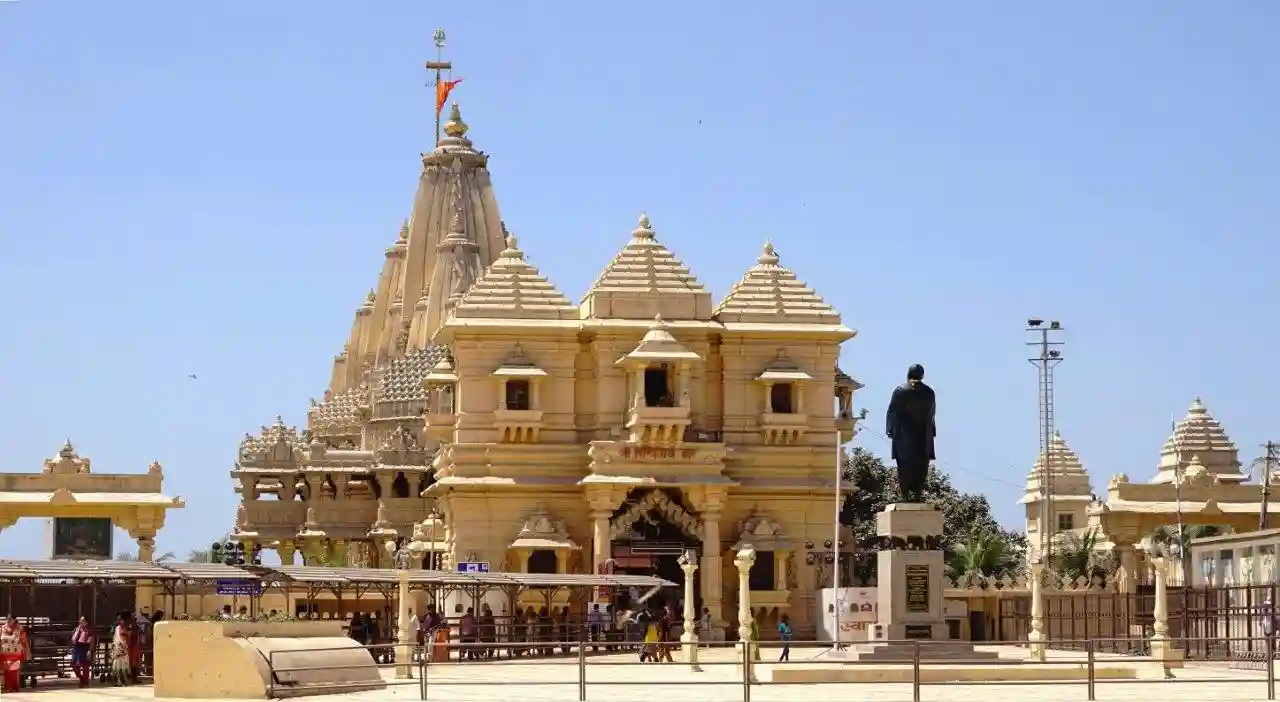 After an early breakfast, proceed to Somnath, one of the most revered Shiva shrines in India. En route, enjoy the coastal drive through quaint fishing villages and scenic landscapes. On arrival, visit the magnificent Somnath Temple, one of the twelve Jyotirlingas of Lord Shiva, known for its powerful spiritual aura and stunning sea backdrop. Also visit Bhalka Tirth, where Lord Krishna is believed to have left his earthly form, and Triveni Sangam, the confluence of three sacred rivers — Hiran, Kapila, and Saraswati. Attend the evening Aarti ceremony at Somnath Temple and, if time permits, witness the Sound and Light Show narrating the temple’s rich history. Overnight stay in Somnath.